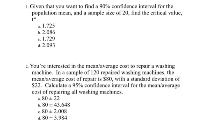 95 percent and 99 percent confidence intervals are the most common choices in typical market research studies. Refer to the above table. And divide that by the square root of n. Finding an estimate for a population proportion for other levels of confidence. This is what you will use to gather data for testing your hypothesis. Estimate the mean salary of all recently graduated students. Statistics for dummies, 2nd edition. Apr 21, 2020 · here is how to find various confidence intervals for the population proportion: It is reasonable to assume that the glucose level distribution is normal. Estimate the population variance using a 90% confidence interval. Therefore, the confidence interval at a 90% confidence level is 3.22 to 3.38. Jan 13, 2020 · just so, how do you calculate a 90 confidence interval? Write down the phenomenon you'd like to test.